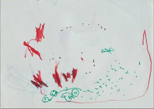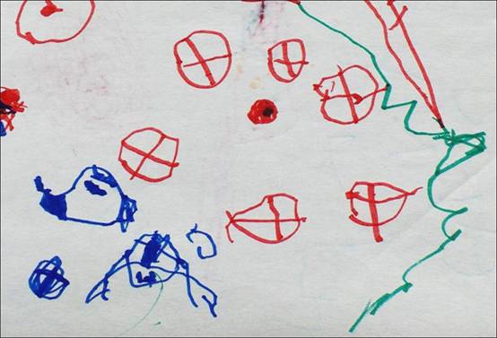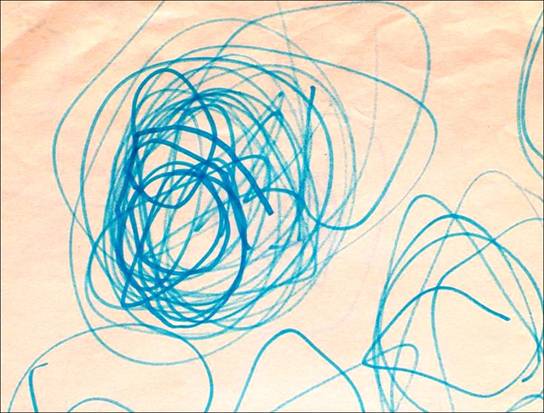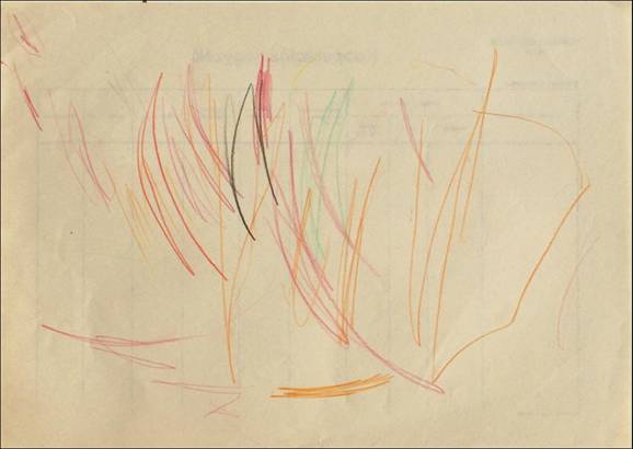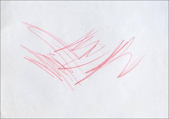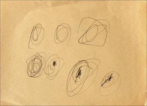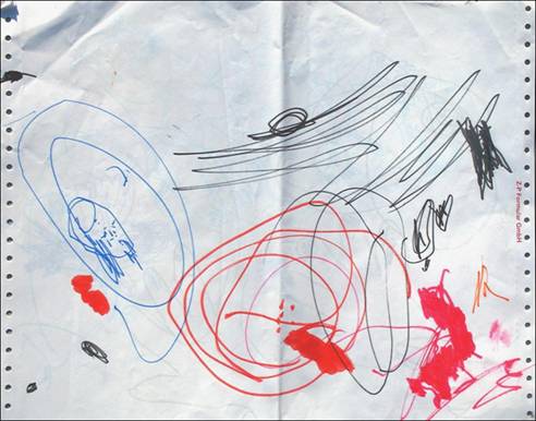 A különböző firkatípusokat külön-külön lapokon is rajzolhatja a gyermek egy mindent elöntő lelkiállapot szerint, de egyazon lapon is megjelenhetnek, ekkor azonban szinte véletlenszerűen kerülnek egymás mellé, vagy éppen egymásra. (9. kép)