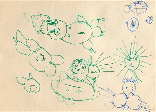4. kép - Fanni másfél éves „fészekfirka” rajza