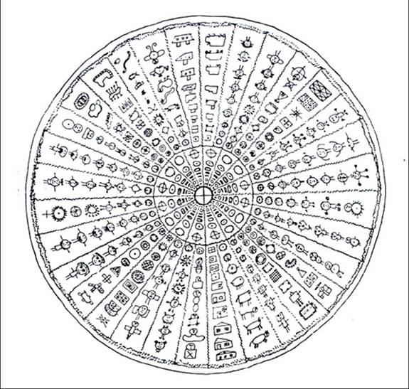 az emberiség legalapvetőbb, legősibb vizuális szimbólumaival. (Nap, mandala,